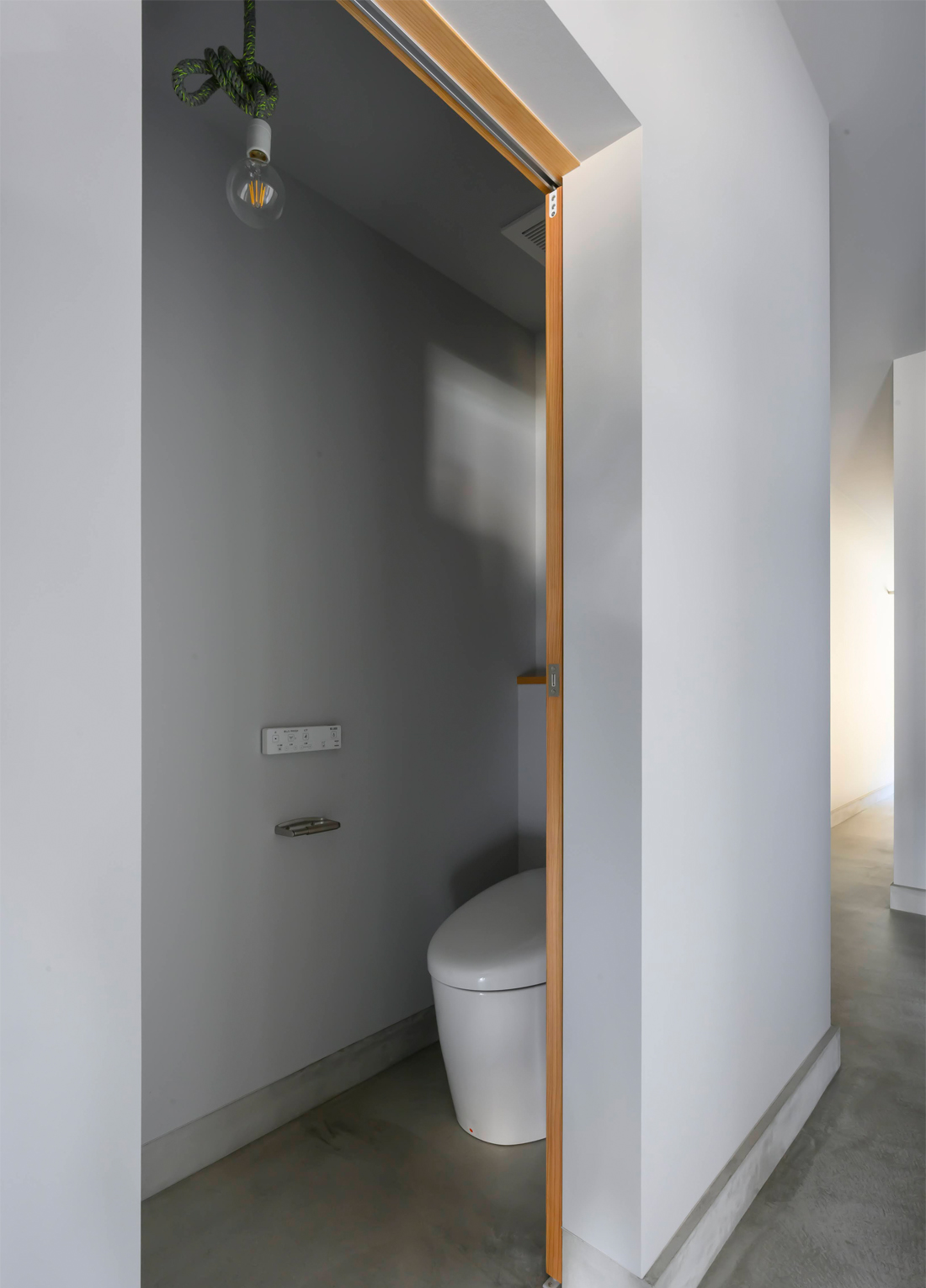 継ぎ目のないモルタル調の床と、装飾を抑えた白い壁面が、静謐で洗練された印象をもたらします。